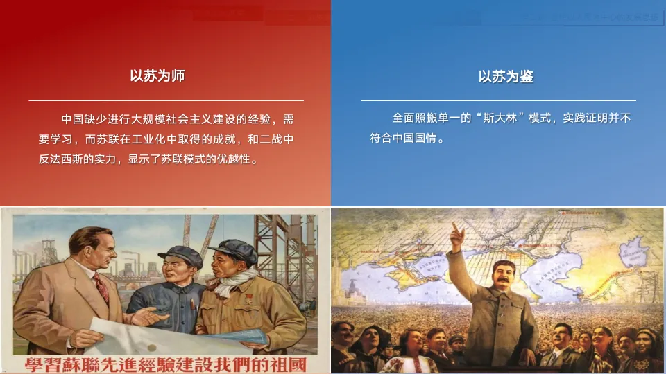 所以,这个时期的背景我们可以概括为:“以苏为师,探索自己的建设道路。”