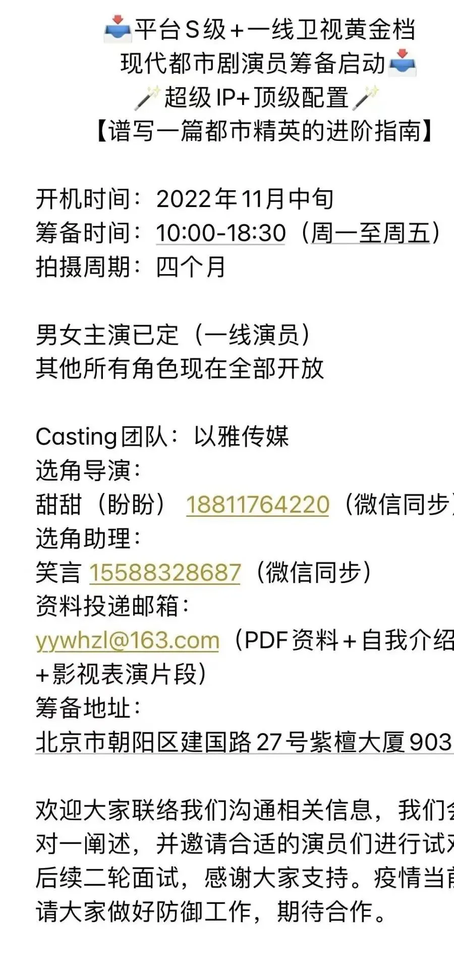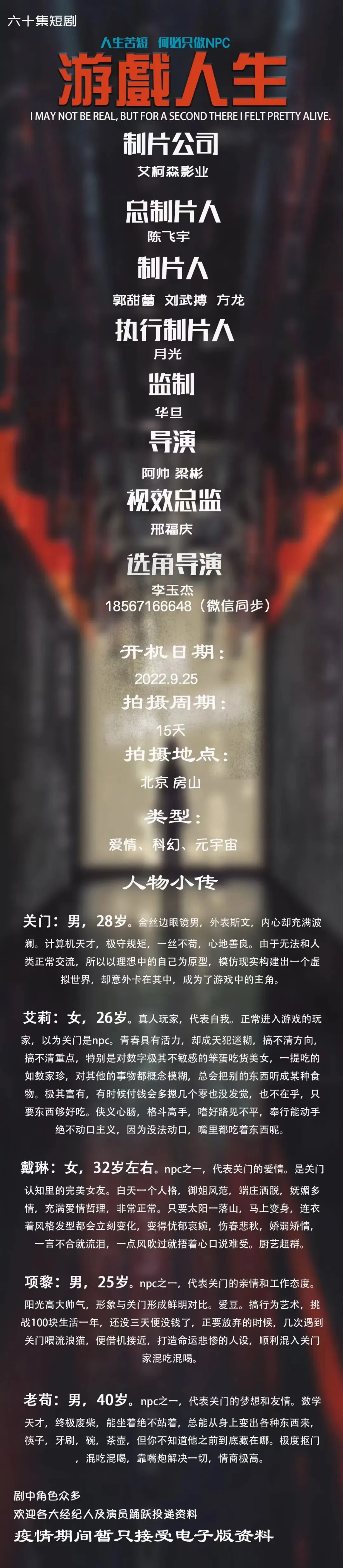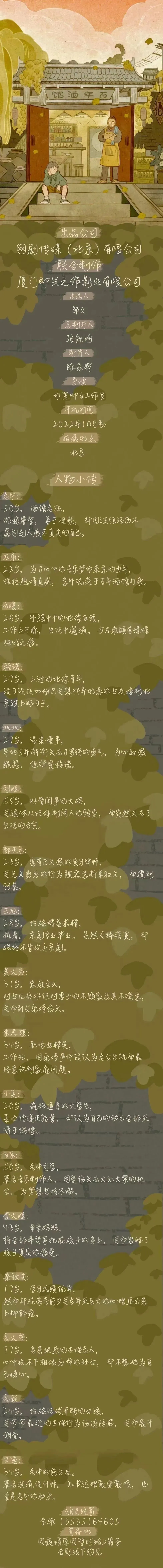 选角助理:笑言 15588328687(微信同步)