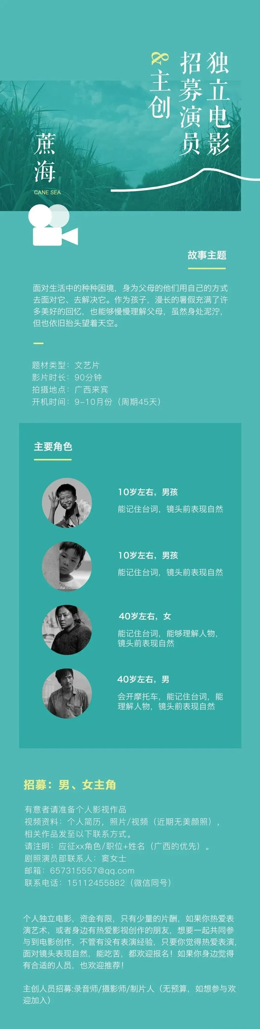 选角负责人:铭伟 13028672345(微信同步)