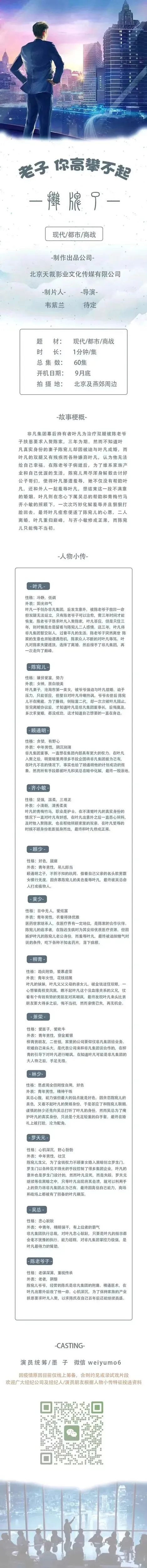 选角导演:甜甜(盼盼)18811764220(微信同步)