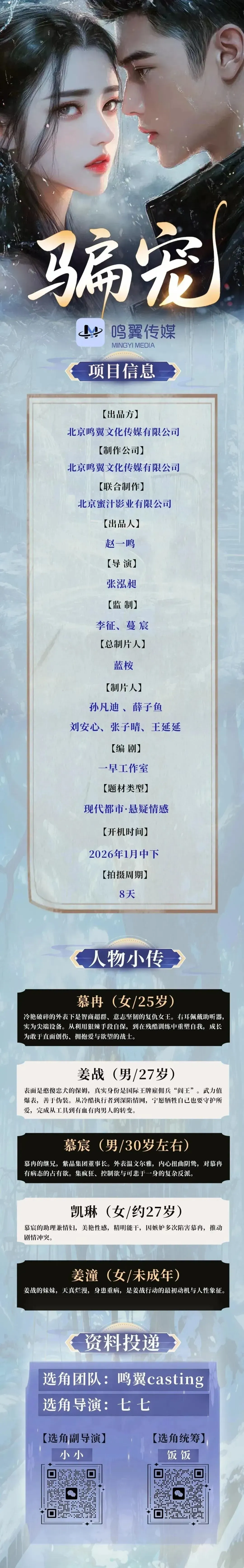 8/19组讯 | 现代刑侦电影、爱情武侠短剧《凤落江湖》等