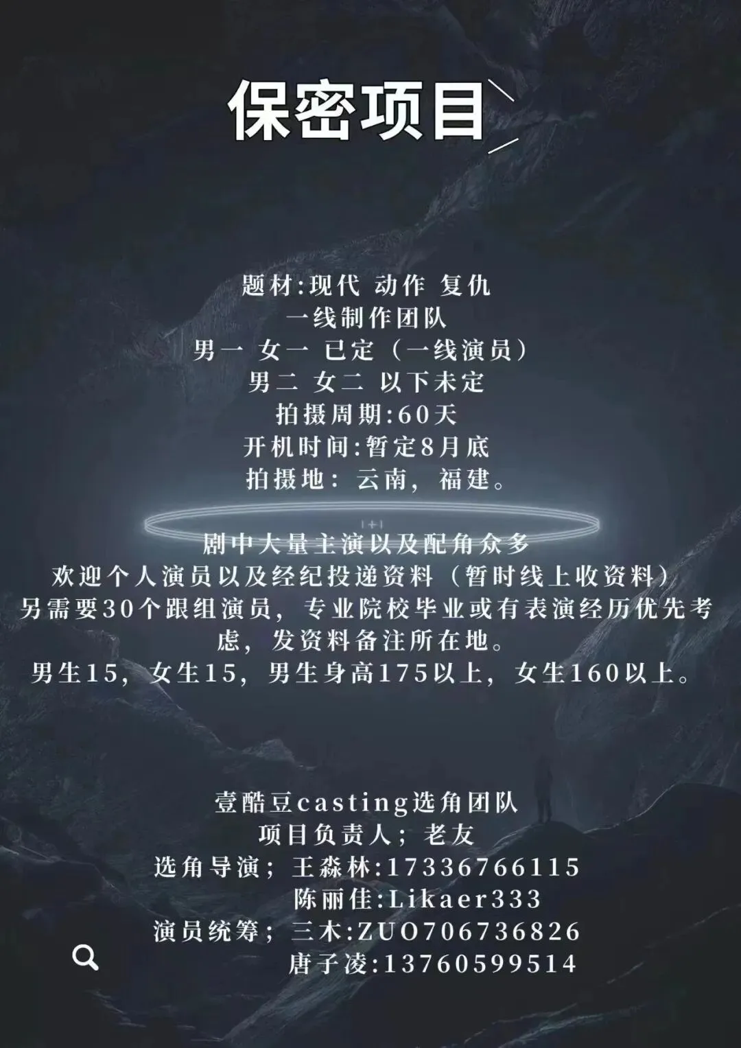 本栏目发布组讯由小编采集与业界共享,组讯如有变化请以实际情况为准。如果遇到剧组收费情况,请谨慎对待并私信官微@戏客Seeker,我们会公示问题组讯并及时处理。谢谢。