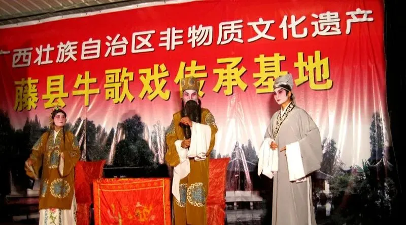 笔者身处广西梧州某个犄角旮旯,小时候大人们用DVD碟片机播放牛哥戏,那无论男女角色都艳丽浮夸的服装,那吊着嗓子用土白话吟唱的声音,让我年幼的心对此并不感冒,甚至我一直觉得牛哥戏好无聊。看见大人们播放这种,扫两眼演员笨拙而简陋的姿势,没看两眼,又无趣地走开去别地玩了。