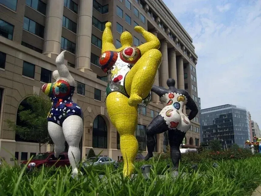 1965 年,妮基受怀孕友人启发,开始创作《娜娜》系列雕塑。娜娜们体态丰硕、曲线夸张,人物姿态自由奔放,或跳舞、或欢笑,颜色鲜艳,充满原始的生命力和如孩童般无拘无束的快乐,完全摒弃了传统艺术中纤细、被动的女性形象。