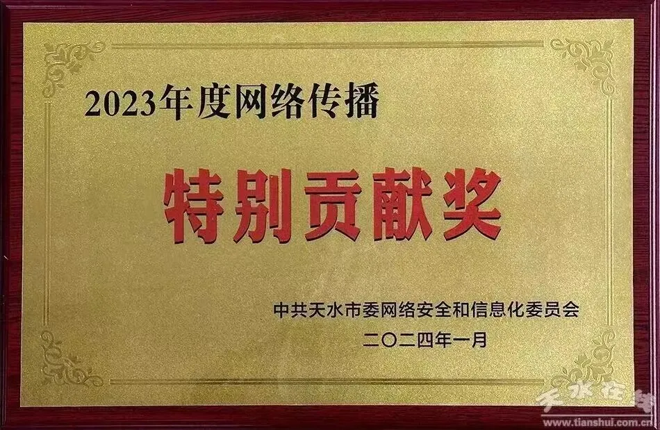天水在线荣获天水市委网信委颁发的2023年度网络传播“特别贡献奖”