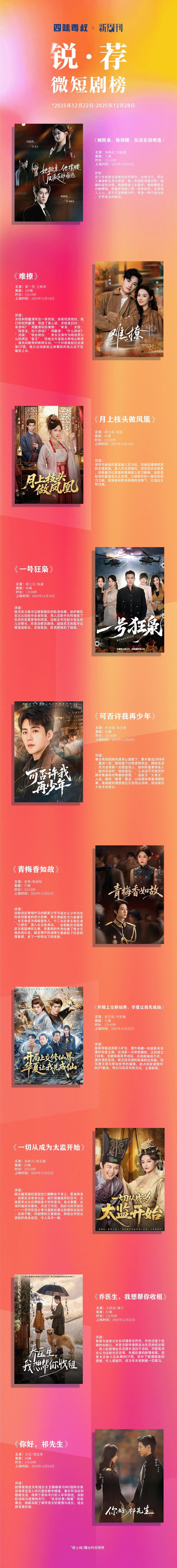 本次「锐·荐微短剧榜」周榜第45期(2025年12月22日——2025年12月28日)