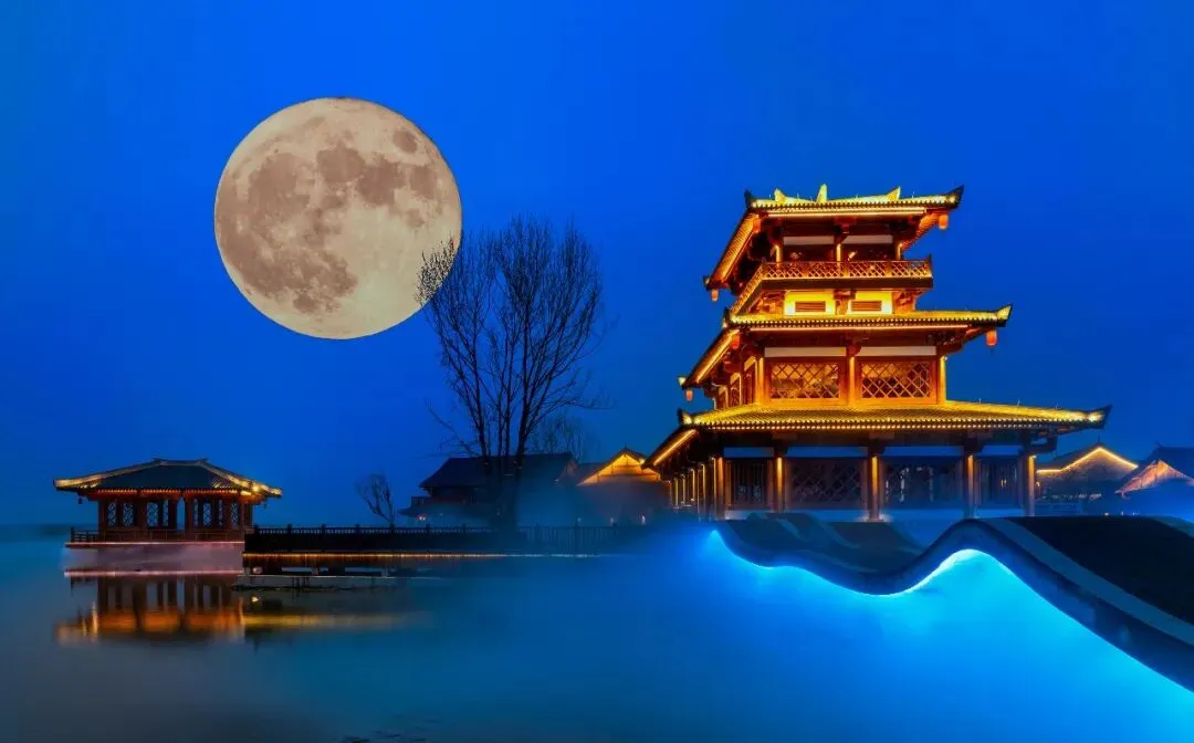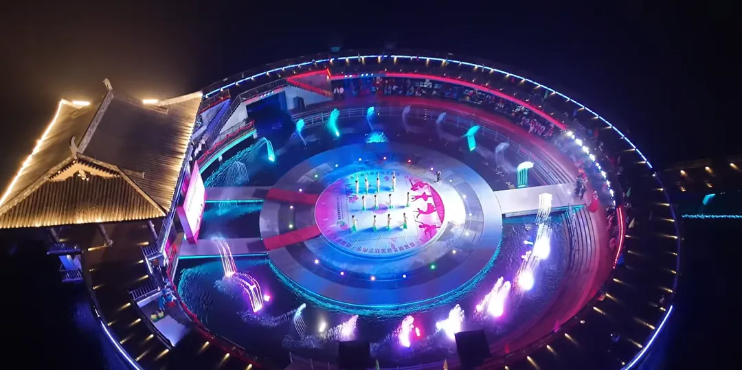 同心桥由引桥、观演平台、戏台、戏水区、表演区组成,配套声光电项目投射在中心开阔水面上,同时配有灯光亮化和水幕喷泉。走在桥上,脚下是碧波荡漾与光影交织,身旁是青瓦白墙,灯光喷泉开启,氛围感直接拉满,情侣打卡超合适~