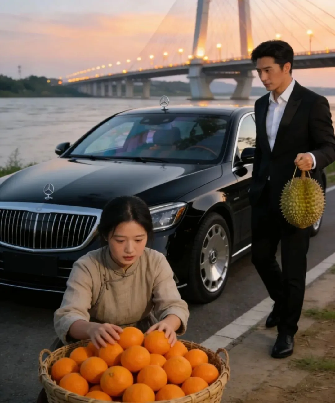 没曾想这一兜水果竟成了永州湘超队的冠军密码,赛场上队员们憋着一股不服输的死磕劲,从1:3的落后局面一路逆袭,最后绝杀对手成功夺冠。捧起湘超奖杯的那一刻,全队欣喜若狂,绕城巡游时坐的还是拆了车顶的公交车,硬核又浪漫的场面直接火遍全网,永州湘超队的名字一夜之间被众人熟知。消息传到江苏,“散装苏大强”们彻底坐不住了,开启了花式应援内卷模式,苏州率先砸下一万块,在永州宋家洲大桥立起庆功广告牌;南京不甘示弱,连夜包下隔壁显眼位置,落款霸气写上“多省省会南京网友贺”;泰州、昆山也紧随其后,“宇宙昆山跨千里,致敬冠军永州城”的标语,直接把排面拉到了宇宙级。带头搞应援的是昆山霸道总裁周砚,这人开着迈巴赫直奔我的水果摊,开口就说要包下我全年的货,原来他尝过队员带回来的永州水果,一眼就相中了这独特的风味。我正纳闷他为何如此大手笔,转头就见他目光紧锁在送水果过来的橘摊姑娘身上,眼神里的惊艳藏都藏不住,活脱脱霸总剧本照进现实。他对着姑娘傲娇开口:以后你球队的水果我全包了,就一个条件,每天得由你亲自给我送一斤刺匍子。姑娘吓得攥着橘子往后退,周砚却立马软了语气,还透着股苏大强式霸道:我不要你觉得,我要我觉得,这水果必须你送。