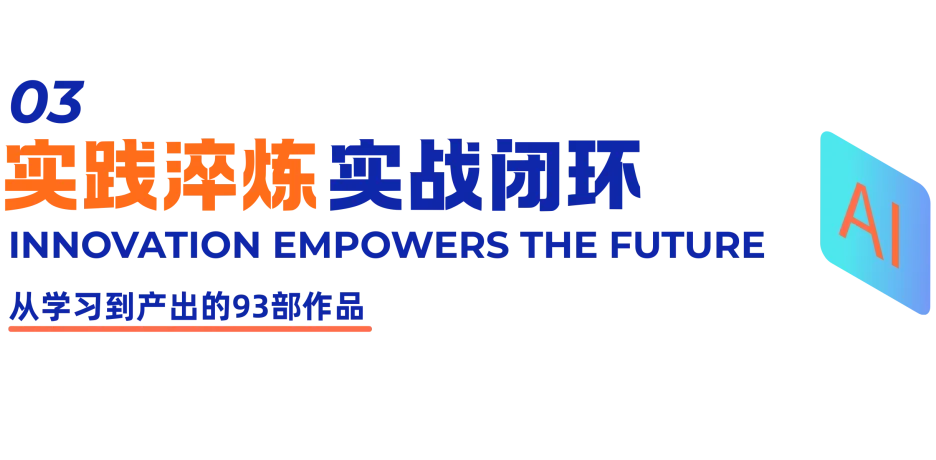 这些作品类型丰富、风格多元,既是学习成果的集中展示,更是学生们积累的第一批企业级项目经验。“通过这次培训,我不仅学会了AI工具,更重要的是理解了如何用技术讲好一个故事。” 一位参与学生如是说。
