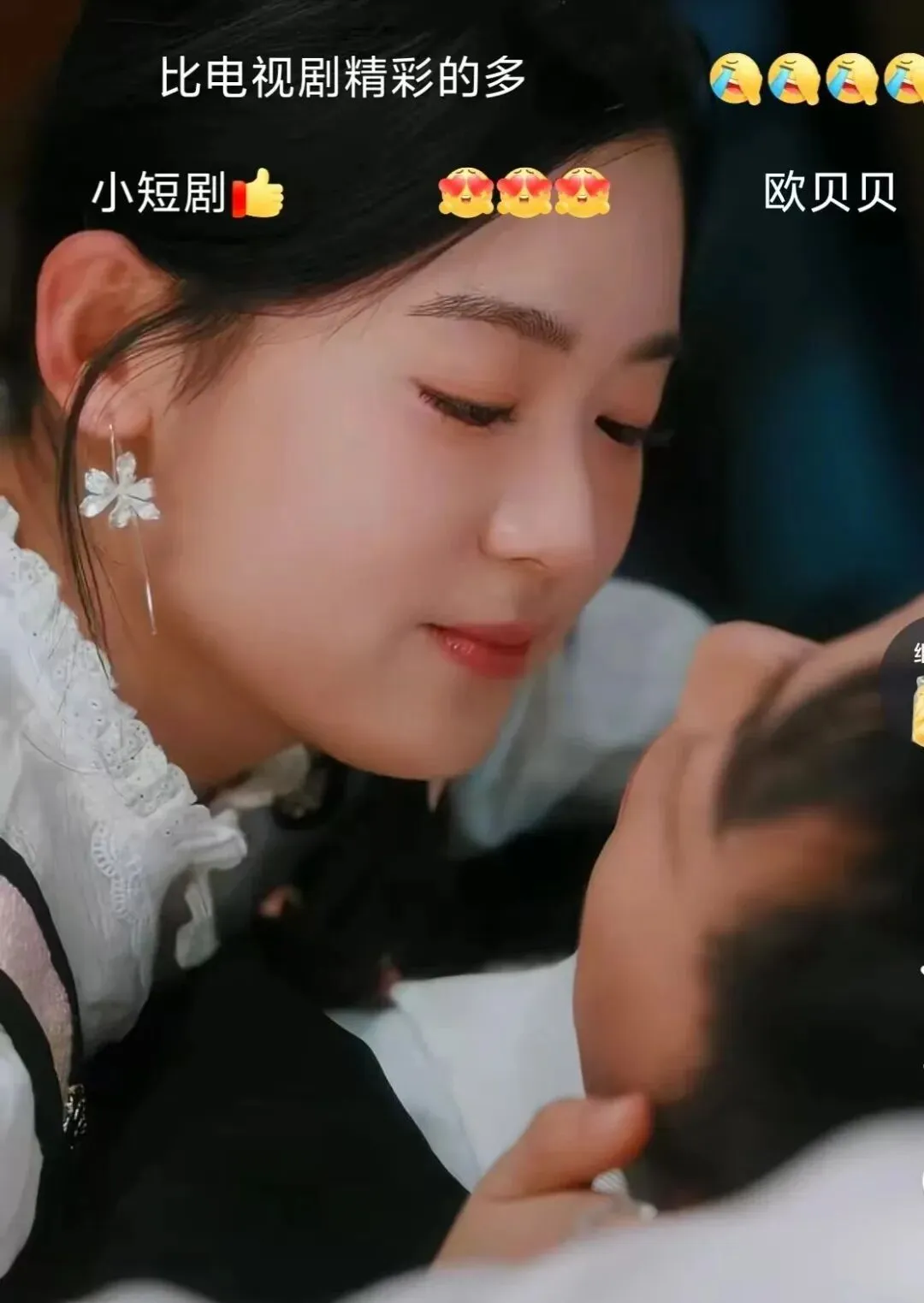 哈哈哈,乡下上班实在是孤独无聊,唯有短剧聊以慰藉,想谈恋爱找不到对象只能看别人谈了。回到正题,其实这个短剧套路非常老古,简而言之,我死后才发现那个男人爱我之深,如果有下一世,我一定不会再错过他,然后,你们懂的,我重生了,重生到了一切都来得及的时候......那么我为什么说它甜呢,因为女主演的太灵动可爱了,如果有人这样看着我,我很难不爱上她,男主的克制恰到好处,稳重不油腻,好吧,最重要的是,我是个颜控,这两个人长得太合心意了,女主的一颦一笑都是可爱暴击。男主长得很正,不知道为什么,有时候感觉有点像撒贝宁哈哈,想到撒贝宁去演短剧莫名想笑,男主的身姿挺挺拔的,感觉还挺好看。我非常喜欢喝交杯酒这一段,“她在闹,他在宠”具象化了,哈哈哈,小舅舅不仅脸红,连手都在红温,这里让我想到一句歌词,“灯光再亮也要抱住你”,我好喜欢这种明目张胆的爱。我就不过多剧透了,其中的甜还要自己体会,祝大家都能有甜甜的恋爱。