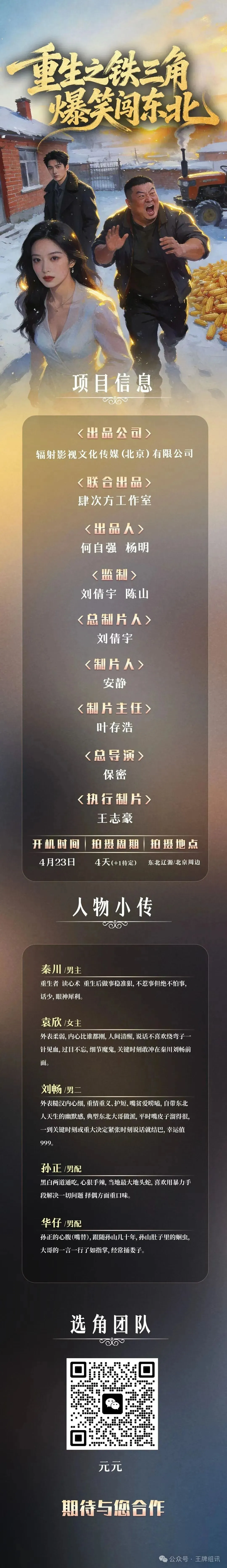 >【4月23日 东北辽源/北京周边】短剧《重生之铁三角爆笑闯东北》招募演员
